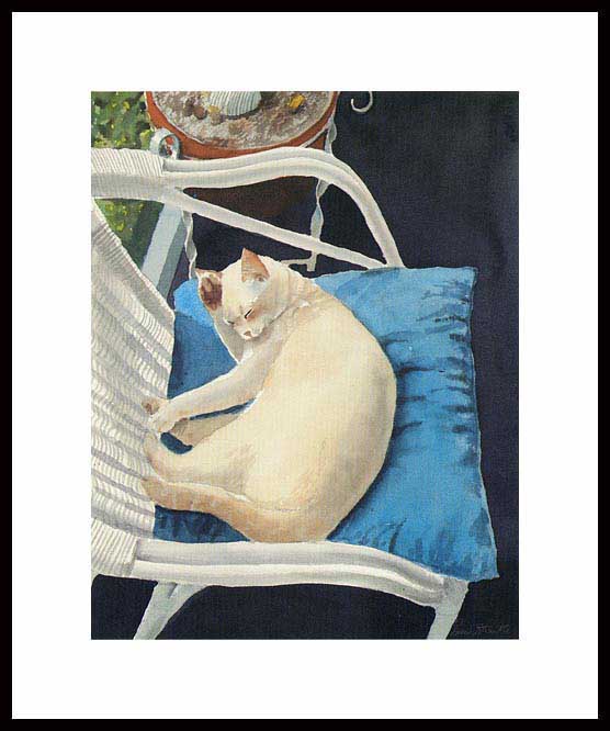 Hi Drew, Coincidentally, we have a male seal point Siamese named Rocky! These will make a total of 6 of your Siamese prints we have. I was excited to find color ink prints in a shop in Siesta Key while on vacation in Sarasota in June this year. We first heard of you on our vacations over the years there. We have 3 seal point Siamese: Rocky and siblings Toby and Macy. "Meezers" has a particular place of honor on our mantel over the fireplace and is my favorite. Love your Meezers! Thanks, Drew. -Renee