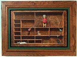 The Balancing Act Matted Artist's Proof by Drew Strouble Trompe l'Oeil Art a trompe l'oeil oil on plexiglas still life painting of a tightrope walker, cat toys and a fortune cookie fortune in a printer's type tray. Limited Edition of: 25 Artist's Proofs I Overall size: 16 3/8" x 22 3/8" incl. 2 3/4" mat. I Each print is hand signed, titled & numbered with matching Certificate of Authenticity. All prints are shrink wrapped with a white mat and foamcore backing.