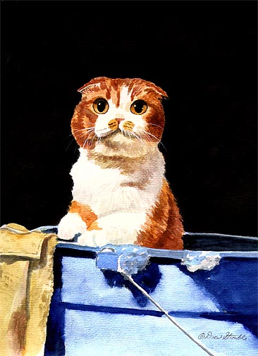 Bath Time Matted Limited Edition of an original Drew Strouble cat art painting of a Scottish Fold cat taking a bath. Limited Edition of: 950 Prints • Overall size: 14 1/2" x 18" incl. 2 1/2" mat. • Each print is hand signed, titled & numbered with matching Certificate of Authenticity. All prints are shrink wrapped with a white mat and foamcore backing.