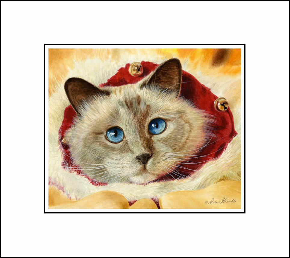 This beautiful fur face is a Blue Point Birman cat. This is the matted Limited Edition giclee print of my original watercolor. The edition size is 950 prints and 50 artist's proofs. The overall size is 18 1/4" x 16 1/4" including a 2 1/2" wide mat. Cinco de Mayo will appear in as the illustration for the month of December in my 2013 Purrfect Days Calendar published by Pine Ridge Art, Inc.