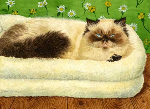 This beautiful Himalayan cat looks as cute and cozy as anything could possibly be. This cat art print verison by Drew Strouble is a Matted Open Edition with an overall size of 9 3/4" x 11 5/8" including a 2" white mat with a black beveled edge.