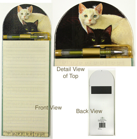 Drew Strouble's CatmanDrew Ebony and Ivory Magnetic List Pad with Gold Gel Pen 3 3/4" x 10 1/4" produced by Pine Ridge Art, Inc.
