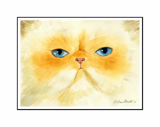 Matted Limited Edition of an original Drew Strouble cat art painting of wonderfully whimsical and very colorful cats. Limited to 950 Giclee prints. Overall size: 14 1/2" x 18" incl. 2 1/2" mat. Each print is hand signed, titled & numbered with matching Certificate of Authenticity. All prints are shrink wrapped with a white mat and foamcore backing.