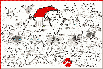 Ho! Ho! Ho! Now through December 18th  That's 4 matted mini prints for the price of 3! Enter coupon code Buy3 at checkout ... we'll gift wrap and send to your friends ... and you'll enjoy purrfect present for yourself! Ho! Ho! Plus, all this month, buy any Limited Edition and get a FREE Art Card. Felines Navidad!