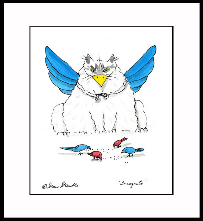 This is the original frame watercolor titled, Incognito" that was shown during my segment on "Must Love Cats" on the Animal Planet Network debuting on 3/19/11, when the show's host, John Fulton was asking me questions about the different styles that I paint in. The image size is 18 x 24 inches and the overall framed size is 24 x 30 inches. You'll love it!!