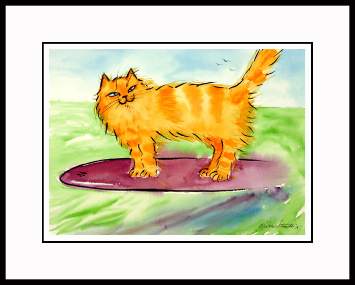 Framed Limited Edition of an original Drew Strouble cat art painting of wonderfully whimsical and very colorful cats. Limited to 950 Giclee prints. Overall size: 14 1/2" x 18" incl. 2 1/2" mat. Each print is hand signed, titled & numbered with matching Certificate of Authenticity. All prints are shrink wrapped with a white mat and foamcore backing. Black frames are high quality extruded anodized aluminum with plexiglas for safe shipping.