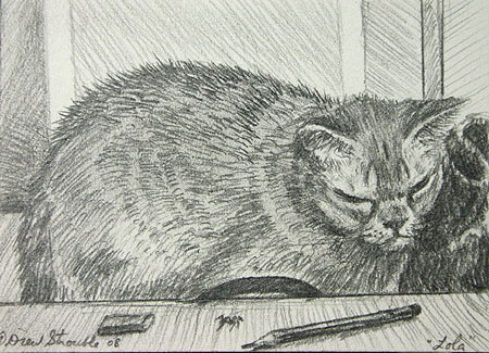 Drew Strouble Catmandrew ACEO giclee print lola in pencilLola in Pencil ACEO by Drew StroubleLola in Pencil ACEO by Drew Strouble