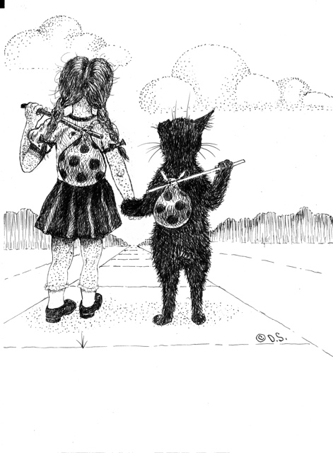 This is the tenth of ten illustrations included when you purchase the set. Click on the image to see a larger view of it. This image is for viewing purposes only. Please order the set of 10 originals or the set of 10 limited editions at the appropriate links on the main "Me and Cat" page.