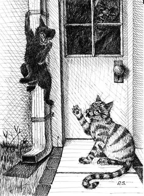 This is the forth of ten illustrations included when you purchase the set. Click on the image to see a larger view of it. This image is for viewing purposes only. Please order the set of 10 originals or the set of 10 limited editions at the appropriate links on the main "Me and Cat" page.