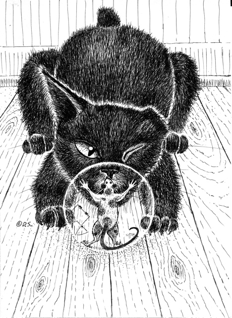 This is the eighth of ten illustrations included when you purchase the set. Click on the image to see a larger view of it. This image is for viewing purposes only. Please order the set of 10 originals or the set of 10 limited editions at the appropriate links on the main "Me and Cat" page.
