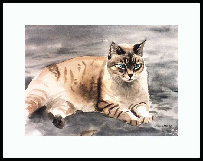 Hi Drew, Coincidentally, we have a male seal point Siamese named Rocky! These will make a total of 6 of your Siamese prints we have. I was excited to find color ink prints in a shop in Siesta Key while on vacation in Sarasota in June this year. We first heard of you on our vacations over the years there. We have 3 seal point Siamese: Rocky and siblings Toby and Macy. "Meezers" has a particular place of honor on our mantel over the fireplace and is my favorite. Love your Meezers! Thanks, Drew. -Renee