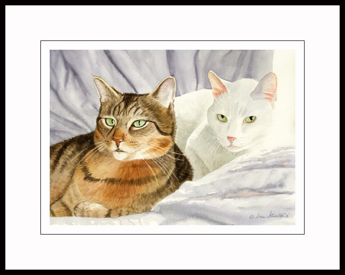Framed Artist's Proof of an original Drew Strouble cat art painting of a classic brown Tabby and White Cat. Limited to 50 Artist's Proofs. Overall size Approx.: 14 1/2" x 18" incl. 2 1/2" mat. Each print is hand signed, titled & numbered with matching Certificate of Authenticity. All prints are shrink wrapped with a white mat and foamcore backing. Black frames are high quality extruded anodized aluminum with plexiglas for safe shipping.