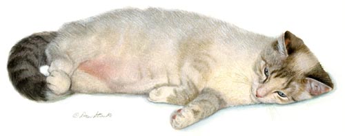 Hi Drew, Coincidentally, we have a male seal point Siamese named Rocky! These will make a total of 6 of your Siamese prints we have. I was excited to find color ink prints in a shop in Siesta Key while on vacation in Sarasota in June this year. We first heard of you on our vacations over the years there. We have 3 seal point Siamese: Rocky and siblings Toby and Macy. "Meezers" has a particular place of honor on our mantel over the fireplace and is my favorite. Love your Meezers! Thanks, Drew. -Renee