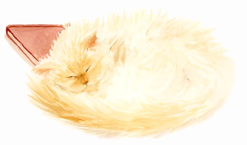 Rusty Matted Artist's Proof of an original Drew Strouble cat art watercolor painting of a Flame Point Himalayan curled up with a good book. Limited Edition of: 50 Artist's Proofs ¥ Overall size: 14 1/2" x 18" incl. 2 1/2" mat. ¥ Each print is hand signed, titled & numbered with matching Certificate of Authenticity. All prints are shrink wrapped with a white mat and foamcore backing. Designer Frames are black aluminum with plexiglas.