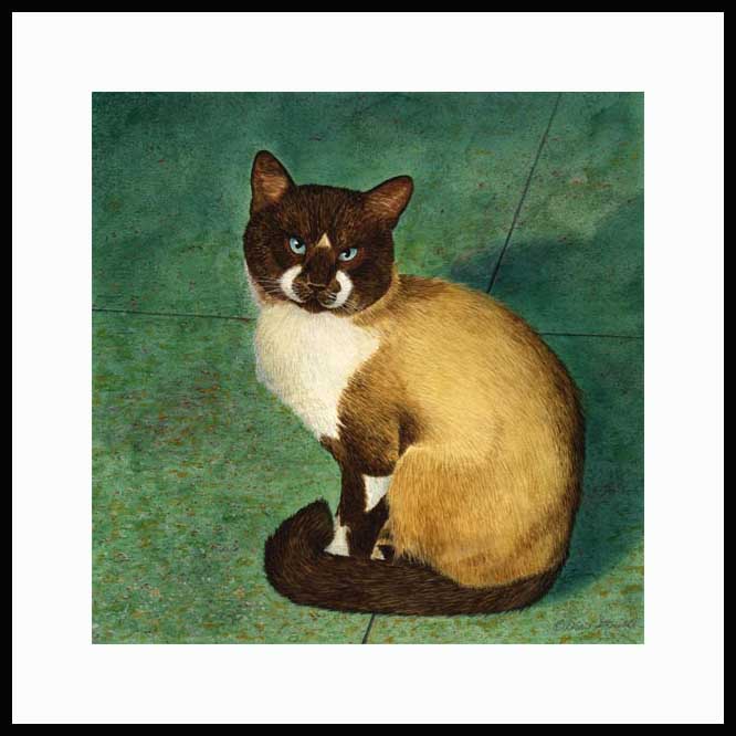 Hi Drew, Coincidentally, we have a male seal point Siamese named Rocky! These will make a total of 6 of your Siamese prints we have. I was excited to find color ink prints in a shop in Siesta Key while on vacation in Sarasota in June this year. We first heard of you on our vacations over the years there. We have 3 seal point Siamese: Rocky and siblings Toby and Macy. "Meezers" has a particular place of honor on our mantel over the fireplace and is my favorite. Love your Meezers! Thanks, Drew. -Renee