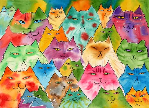 Tuti-Fruti is my latest in my Whimsical Cat Series. Loaded with feline characters, all with their individual purrsonalities. Your going to adore this one! This cat art print verison by Drew Strouble is a Matted Medium Open Edition with an overall size of 14 1/2" x 18" including a 2 1/2" white mat with a black beveled edge.