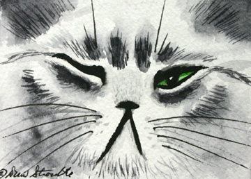 Highly collectible ACEO size archival giclee print 2 1/2" x 3 1/2" in clear polypropylene sleeve. Hand signed and titled in pencil by the artist on the reverse side. ACEO stands for Art Card Editions and Original.